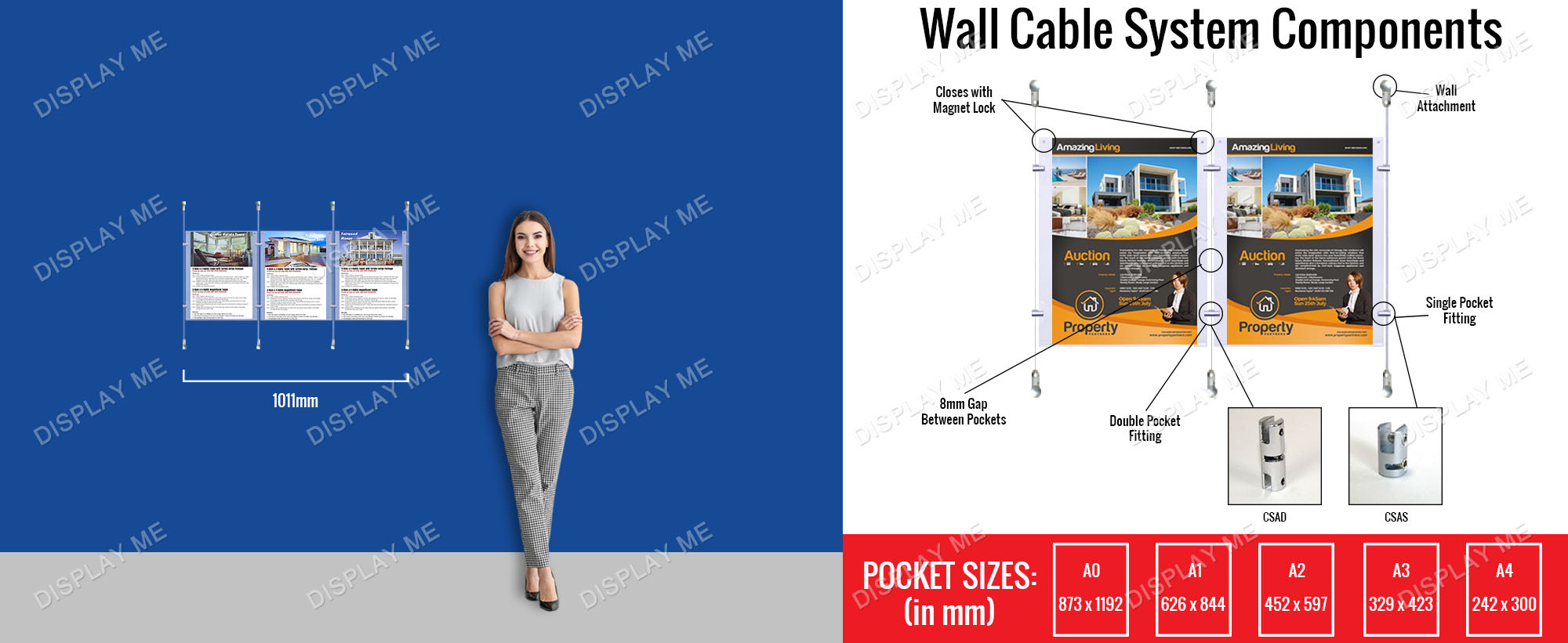 This Wall Acrylic Display cable system is a great way of displaying literature or signs on any wall.