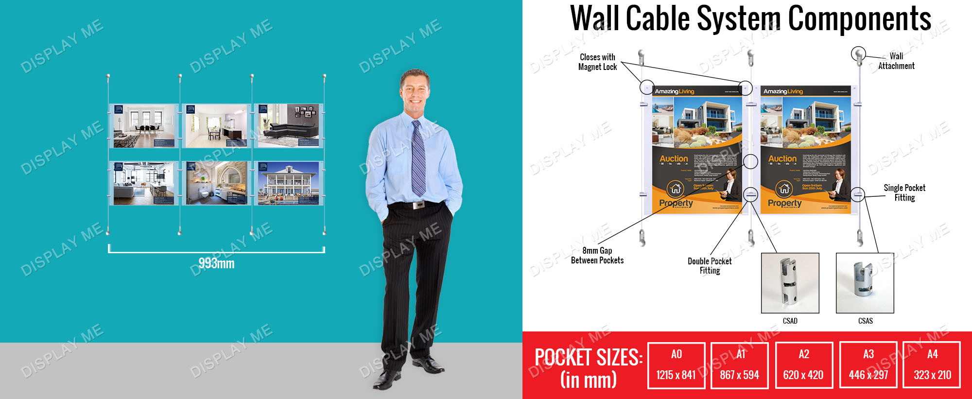 This Wall Acrylic Display cable system is a great way of displaying literature or signs on any wall.