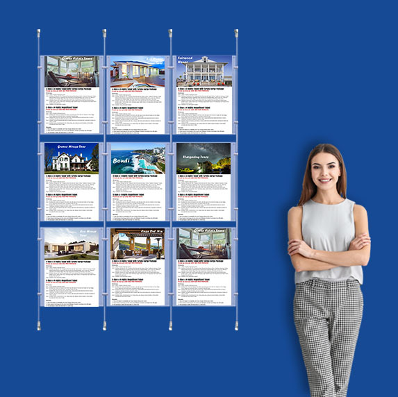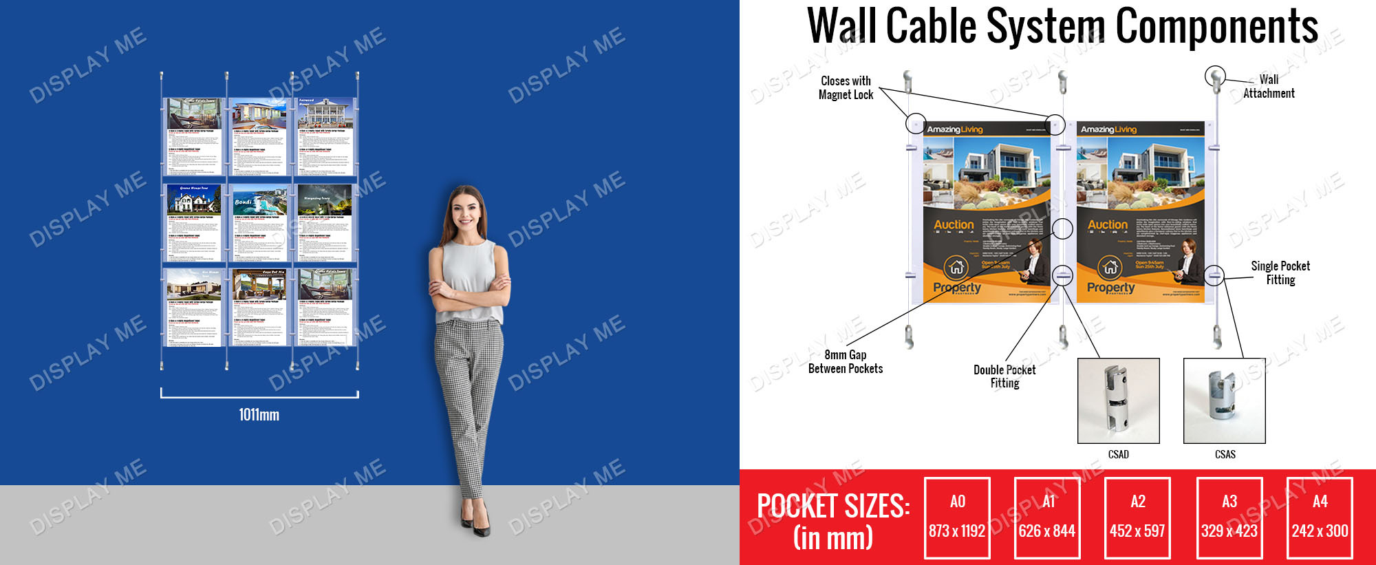 This Wall Acrylic Display cable system is a great way of displaying literature or signs on any wall.