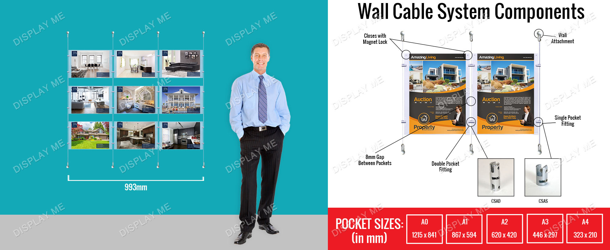 This Wall Acrylic Display cable system is a great way of displaying literature or signs on any wall.