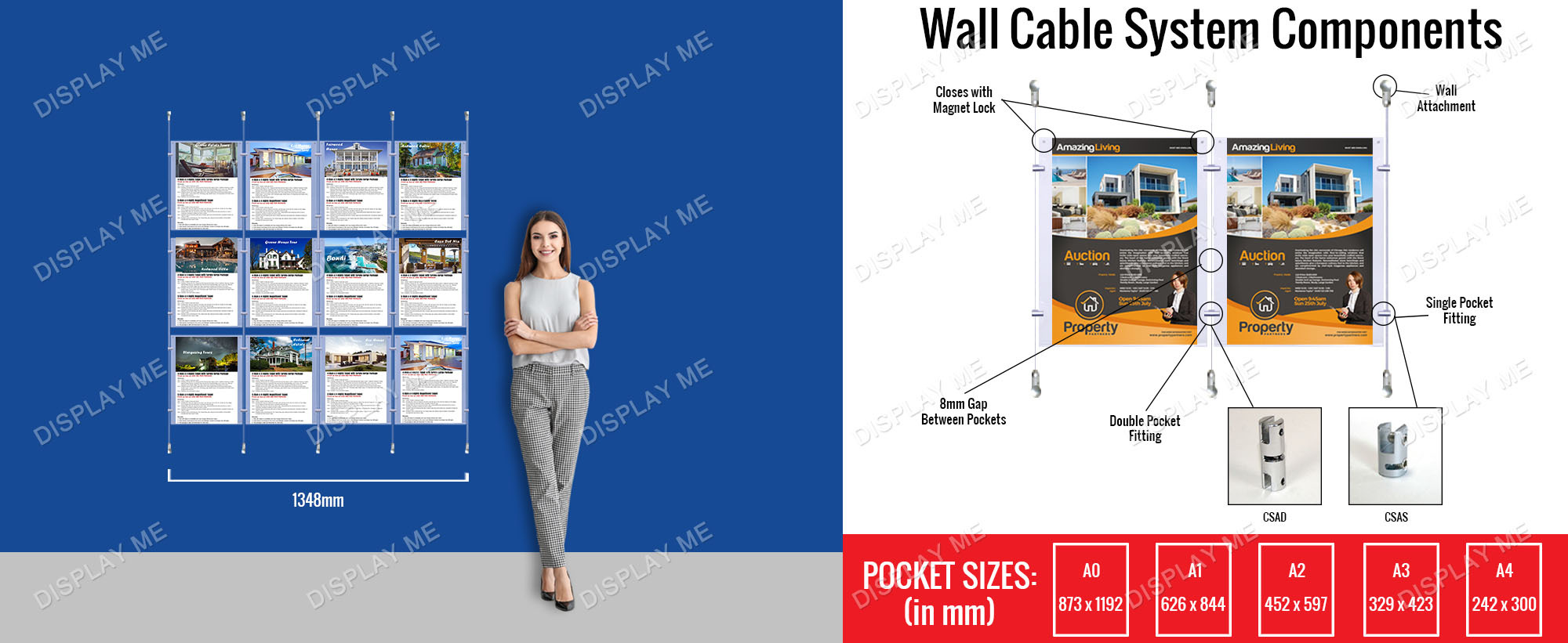 This Wall Acrylic Display cable system is a great way of displaying literature or signs on any wall.