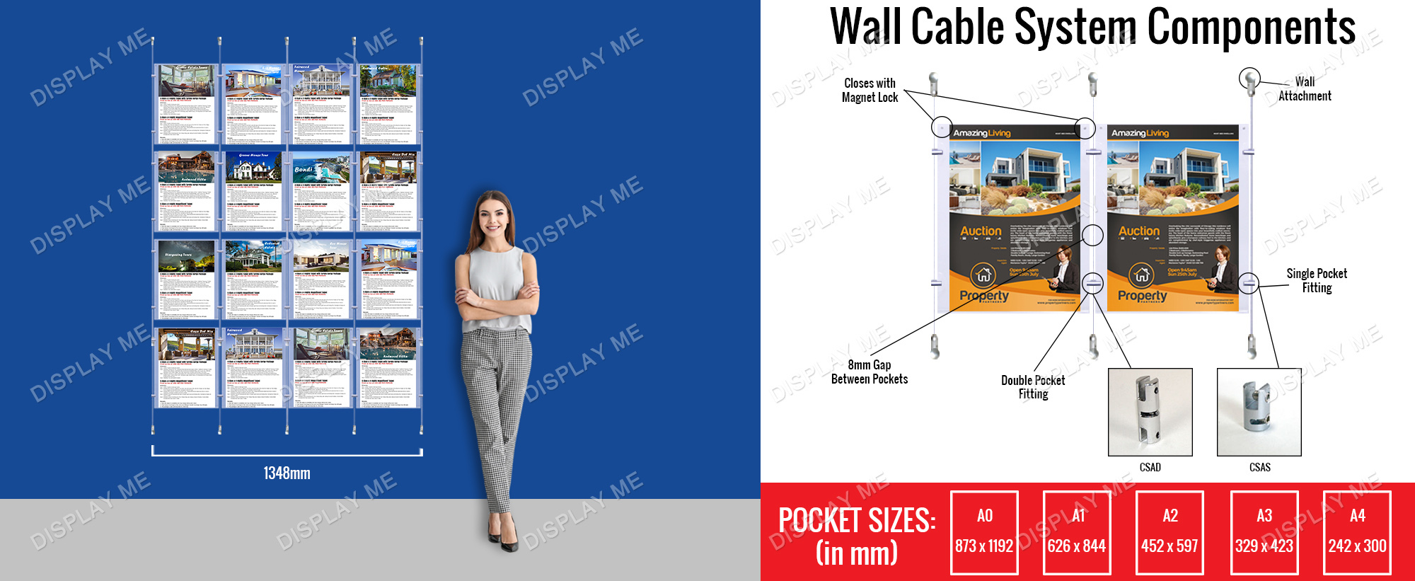 This Wall Acrylic Display cable system is a great way of displaying literature or signs on any wall.