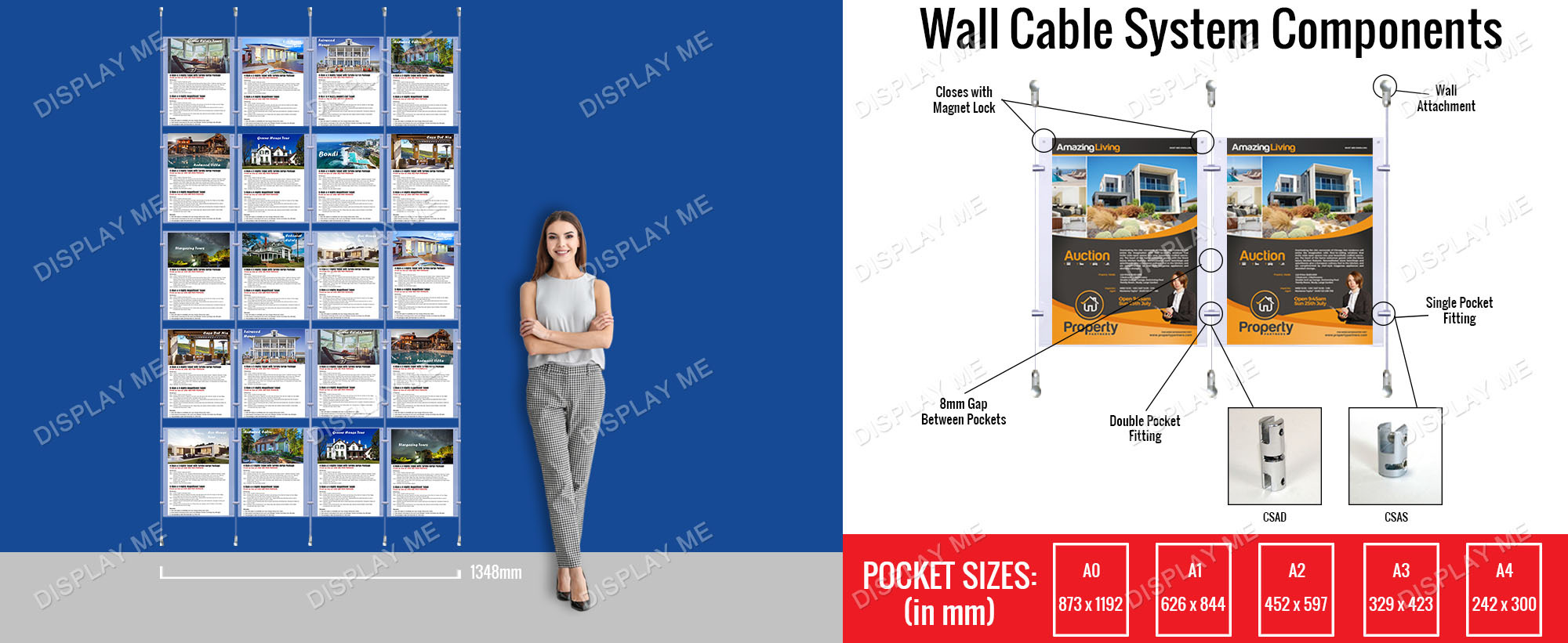 This Wall Acrylic Display cable system is a great way of displaying literature or signs on any wall.