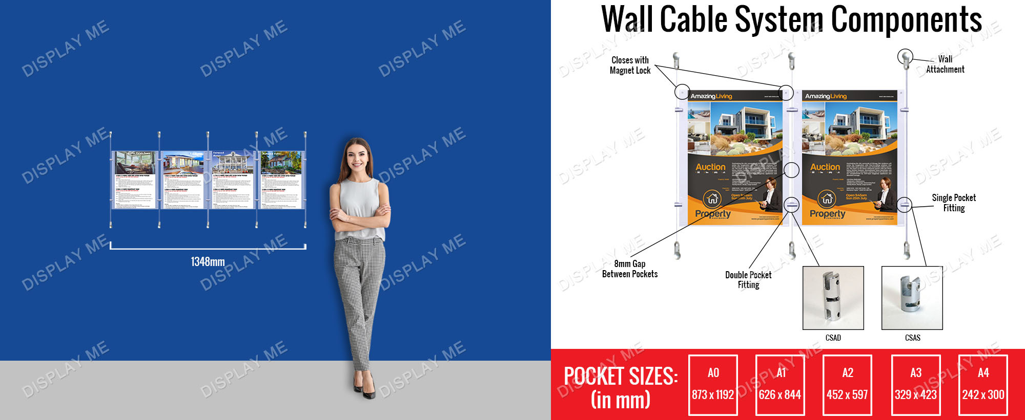 This Wall Acrylic Display cable system is a great way of displaying literature or signs on any wall.