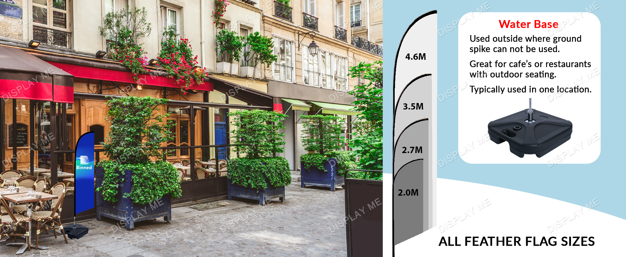 Double Sided 2 Meter Feather Fabric Flag with 20kg Water Tank Base