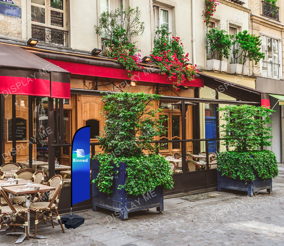 Feather Fabric Banner is also called Flying Banner. The Feather Fabric Banner comes complete with poles, printed banner, carry bag and a your selected mounting option. This Feather Fabric Banner can be produced in both single sided or double sided versions and replacement fabric banners give you the flexibility to change your graphic and message with ease. It is an ideal street banner to be used in moderate winds and weather. Although perfect for outside use, this Feather Banner can also be used for an indoor events.
