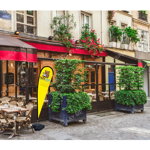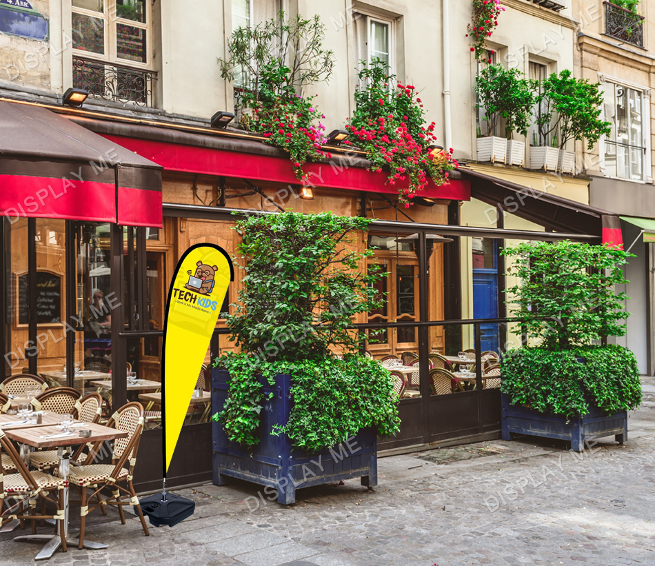 Teardrop Fabric Banner is also called Flying Banner. The Teardrop Fabric Banner comes complete with poles, printed banner, carry bag and a your selected mounting option. This Teardrop Fabric Banner can be produced in both single sided or double sided versions and replacement fabric banners give you the flexibility to change your graphic and message with ease. It is an ideal street banner to be used in moderate winds and weather. Although perfect for outside use, this Teardrop Banner can also be used for an indoor events.
