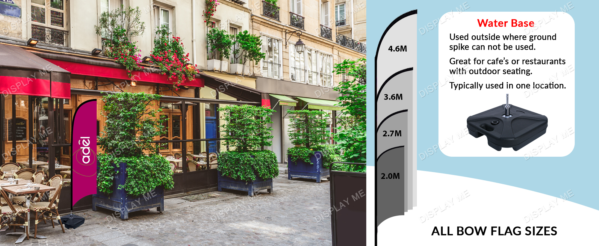 Double Sided 2.7 Meter Bow Fabric Flag with 20kg Water Tank Base
