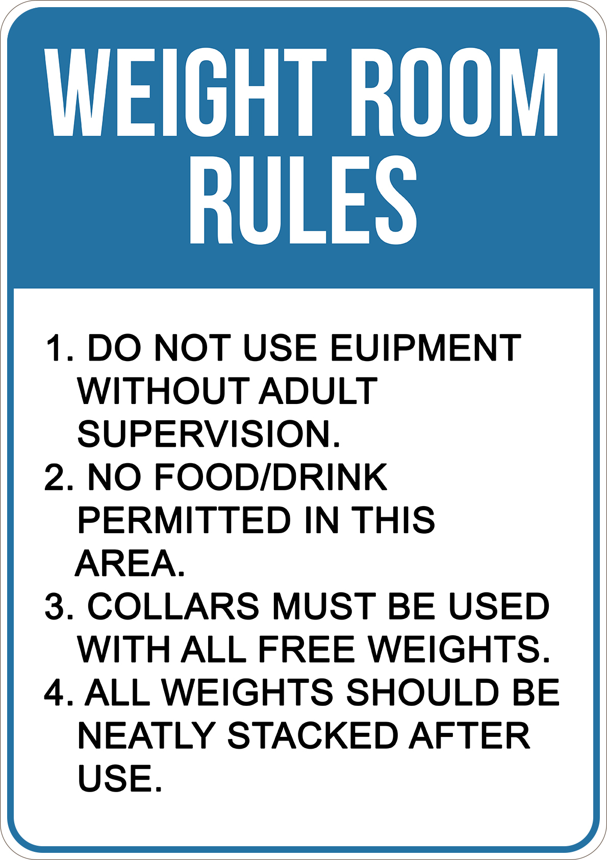 PRINTED ALUMINUM A5 SIGN - Notice Put All Weights and Equiptment Away After Each Use Sign