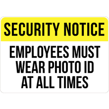 PRINTED ALUMINUM A3 SIGN - Employees Must Wear Photo Id At All Times Sign