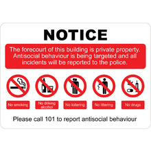 PRINTED ALUMINUM A5 SIGN - No Anti Social Behaviour Sign