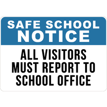 PRINTED ALUMINUM A5 SIGN - Safe School Notice All Visitors Must Report to School Office Sign