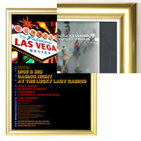 Coloured Snap Frames these sleek designed, high quality mitred square cornered Coloured snap frames clip open from the front and around all four sides. The clip frame system makes changing graphics easier without having to remove the frame from the wall each time. These poster frames are also called snapper frames or clip frames. They can be displayed in portrait or landscape orientation and come supplied with an anti-glare cover to protect your poster and with mounting hardware. They are a cheap alternative for advertising as well as general signage and can be used in a variety of indoor locations for a smart, professional look for your businesses signage. Coloured snap frames are high quality and available at great prices. The frame actually stand out with the various colours, the range has red snap frames, gold snap frames, chrome snap frames white snap frames these coloured clip frames are in stock for same day dispatch. Range of snap frame sizes available – A1, A2, A3 or A4. In stock for same day dispatch to Sydney, Melbourne, Brisbane, Perth, Adelaide - Australia Wide. Buy Online NOW.