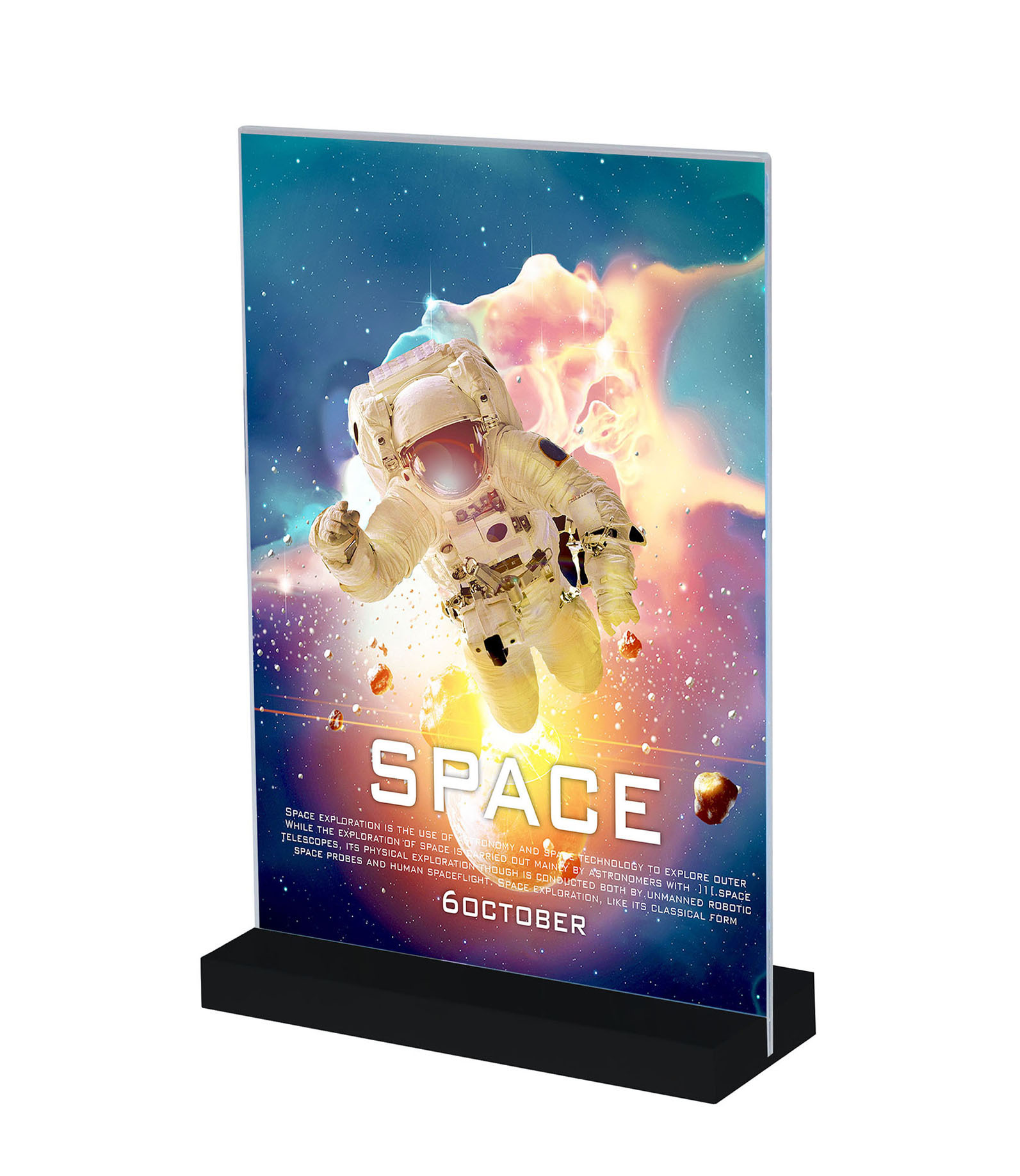 These frames are available in an Portrait Display displaying the leaflet on one side in a glass-like high quality 2mm thick folded acrylic giving you the highest visibility when displaying.